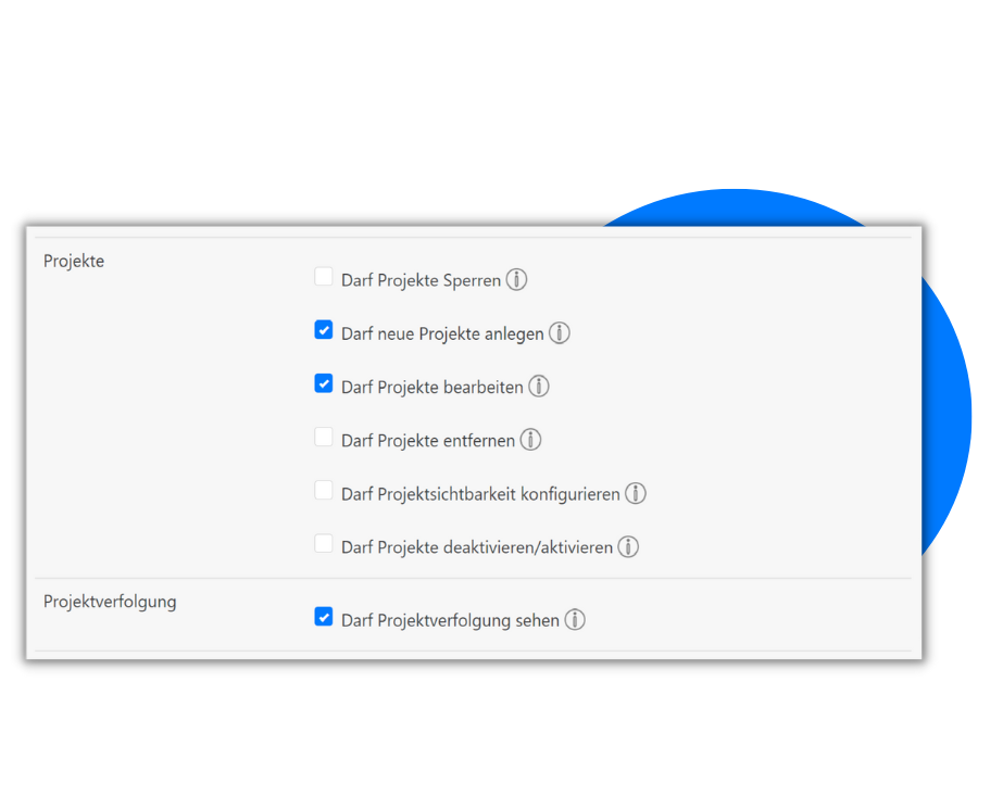 Jedem Mitarbeiter des Agentur-Teams können spezifische Benutzerrechte zugewiesen werden. Dadurch haben Sie die Möglichkeit, festzulegen, welche Teammitglieder z.B. die Abwesenheiten von anderen Mitarbeitern genehmigen oder bearbeiten dürfen, oder wer neue Projekte anlegen, bearbeiten oder entfernen kann.