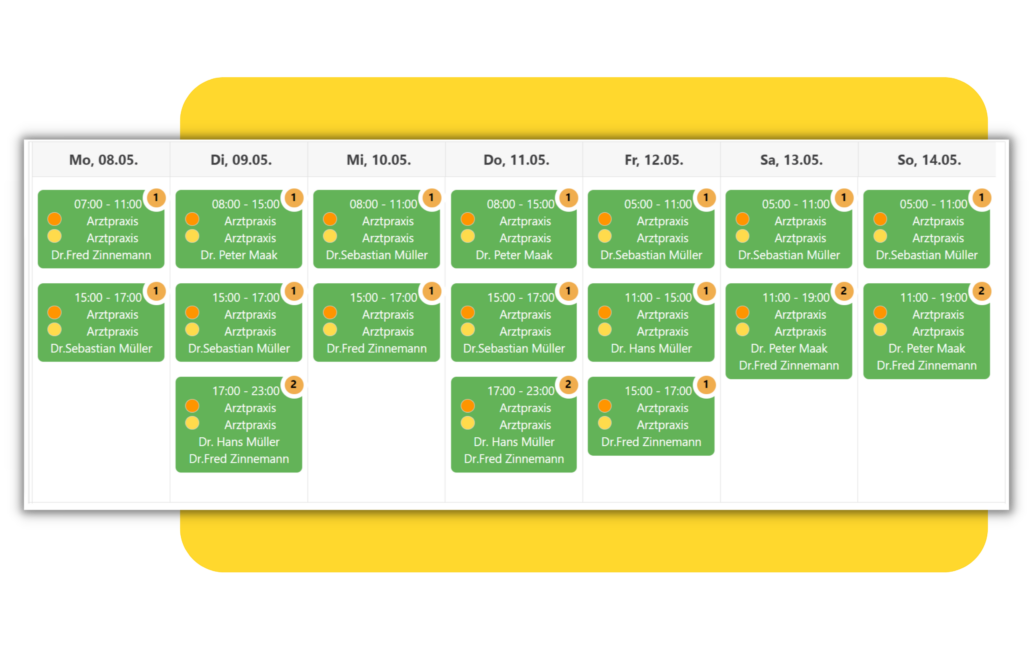 Die Dienstplanung kann auch nach Belieben wiederholt werden. Wenn zum Beispiel ein spezieller Arzt jeden Mittwoch und Freitag in der Praxis ist, kann diese Schicht ganz einfach mit einem Klick wiederholt werden!
