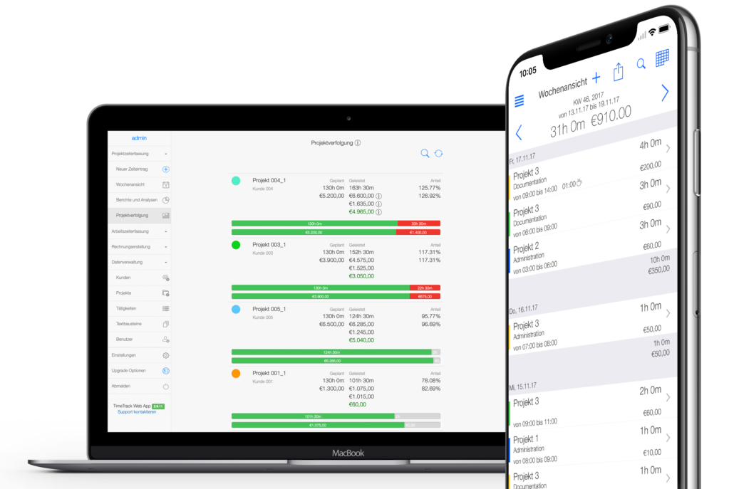 Ist zu wenig oder zu viel Geld und/oder Zeit für das Projekt angefallen? Sie erfahren es sofort! Zu Beginn des Projektes definieren Sie Ihr Planziel und legen die geplante Projektdauer bzw. das Projektbudget fest. Danach aktiviert TimeTrack die Projektverfolgung und wertet Ihre Fortschritte kontinuierlich aus. Die Soll / Ist Vergleiche zeigen Ihnen welche Projekte effizient und welche ineffizient sind. Überblicken Sie Ihre Ressourcen und die Rentabilität Ihrer Projekte, um Ihre Arbeitsprozesse zu optimieren. Laden Sie zusätzlich projektrelevante Dokumente und Dateien hoch, damit Kollegen jederzeit darauf zugreifen können. Egal ob am PC, Mac oder am Smartphone – alle Daten werden zentral gespeichert und sind jederzeit verfügbar.