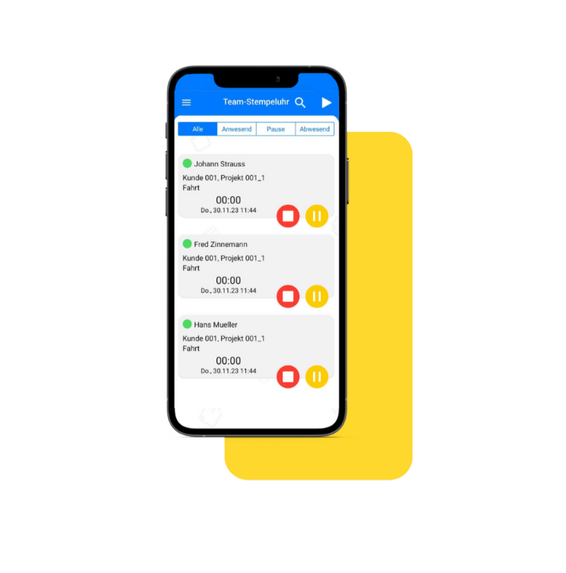 Stationäre Zeiterfassung & Teamfunktion für Großobjekte Bei langfristigen Reinigungsprojekten – etwa in Krankenhäusern, Hotels oder Verwaltungsgebäuden – kann die Zeiterfassung stationär über ein Terminal oder Tablet erfolgen. Mehrere Mitarbeitende stempeln sich dort gleichzeitig ein und aus – ideal für Teams mit fester Stammbelegschaft. Alternativ kann der Teamleiter oder Objektleiter die Zeiterfassung für das gesamte Team durchführen – etwa beim Schichtbeginn oder -ende. So werden Zeiten einheitlich erfasst, Fehler vermieden und der Überblick über alle Standorte und Mitarbeitenden bleibt jederzeit erhalten.
