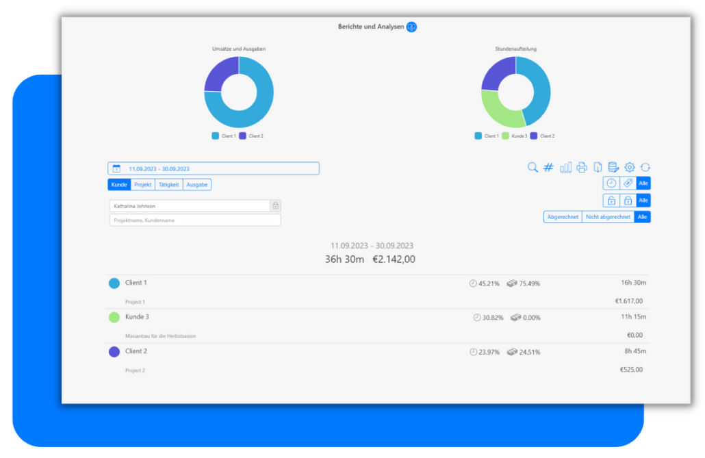 In der Landwirtschaft wird auf Stundenbasis abgerechnet, ohne den Fokus auf Sollstunden. Mit TimeTrack generieren Sie automatisch detaillierte Stundenzettel basierend auf den erfassten Projektzeiten. Dies gewährleistet eine präzise und transparente Abrechnung für Ihre Landarbeiter. Die Digitalisierung der Zeiterfassung mit TimeTrack bietet Ihrem landwirtschaftlichen Betrieb eine effiziente und genaue Möglichkeit, die Arbeitszeiten zu verwalten und die Abrechnung zu optimieren.