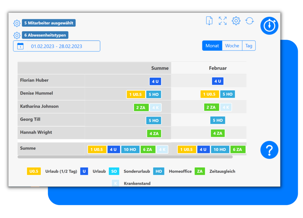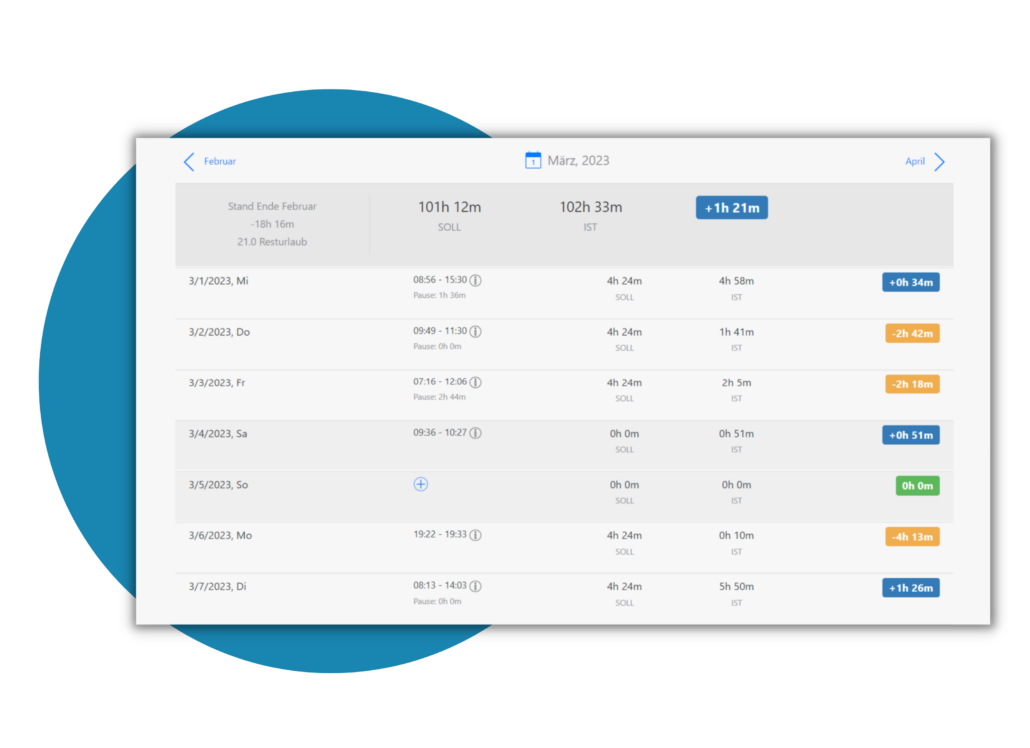 TimeTrack ist kompatibel mit den zahlreichen internen Systemen wie Lohnverrechnungssystem DATEV, was den Abgleich von Arbeitszeiten und Gehaltsabrechnungen erleichtert und Fehler minimiert.