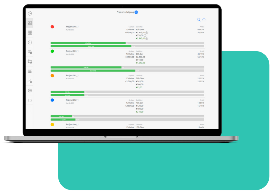 TimeTrack erleichtert die automatische Erfassung von Arbeitszeiten und Tätigkeitsnachweisen. Projekte können präzise zugeordnet werden, was die Rechnungsstellung vereinfacht und Fehler minimiert. Die digitale Stempeluhr erfasst Projektstunden und speichert sie automatisch, sodass Sie den Projektfortschritt im Blick haben. Individuelle Tätigkeiten und Stundensätze lassen sich festlegen oder als CSV importieren – ideal für Unternehmen jeder Größe.