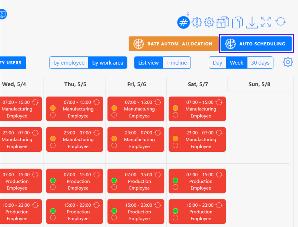 To have your shifts automatically assigned to employees, you must first set up shifts. To do this, click in the calendar or create a time period using click and drag.