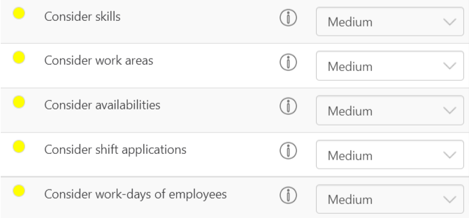 This criterion allows you to indicate how important it is to you that applications from employees be considered for individual shifts.