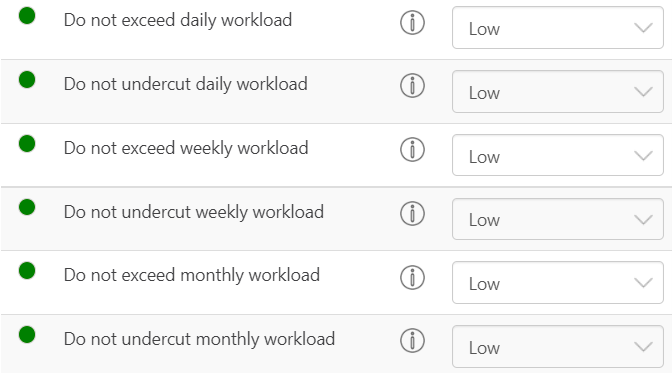 This criterion allows you to specify how relevant it is that the weekly target hours are not undercut.
