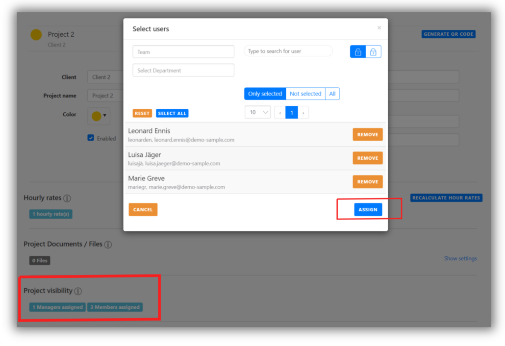 When you create an external employee, you must assign them to specific projects. Under Data Administration > Projects > Enable Project Visibility, you can activate project assignment and define project managers and project employees. This ensures that internal client and project data remain invisible to the external employee.