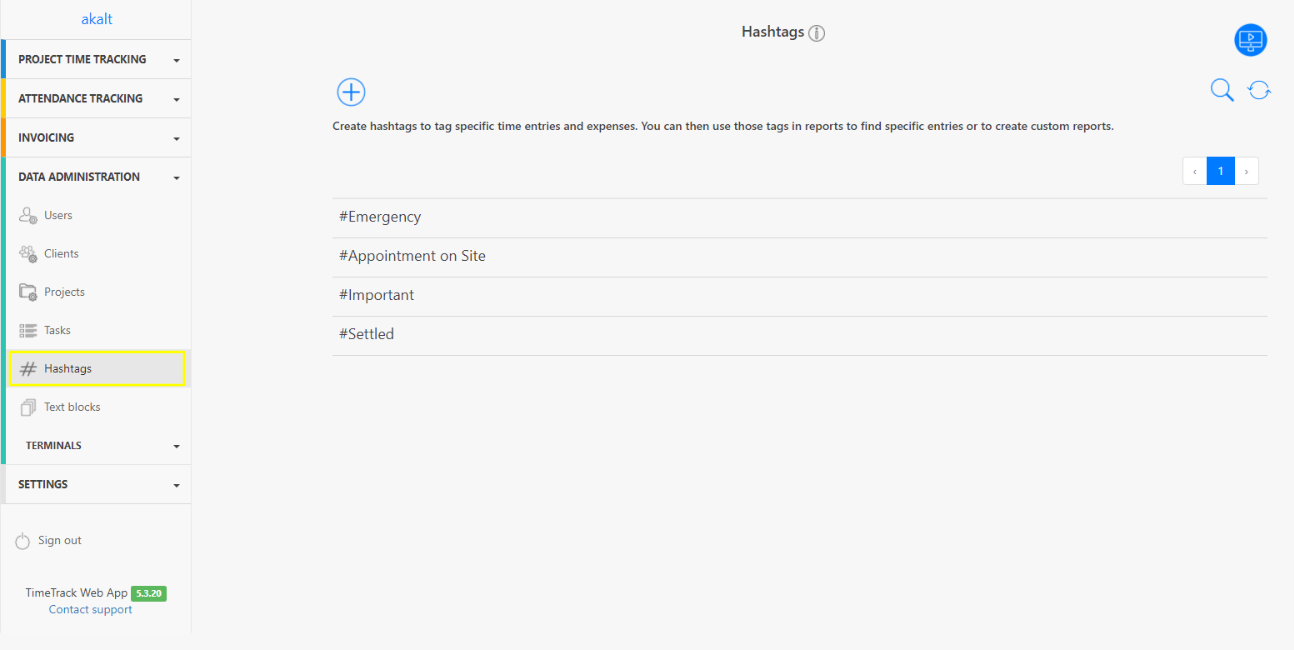 You can create global hashtags under Data Administration > Hashtags or assign certain hashtags to projects, which are then suggested directly when a time entry is made. This way, your employees do not have to search for it and they wont get in the situation to pick up the wrong hashtag. You do this under Data Administration > Projects > select a project and under Project Planning and Performance you will find Add Tags.