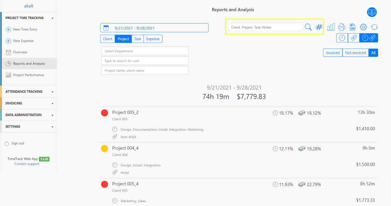 You can also add a Note or Hashtag to your time entry and use Text Blocks. This gives you the possibility to filter your time entries even better and more precisely under Reports & Analysis and to find them in the full text search.