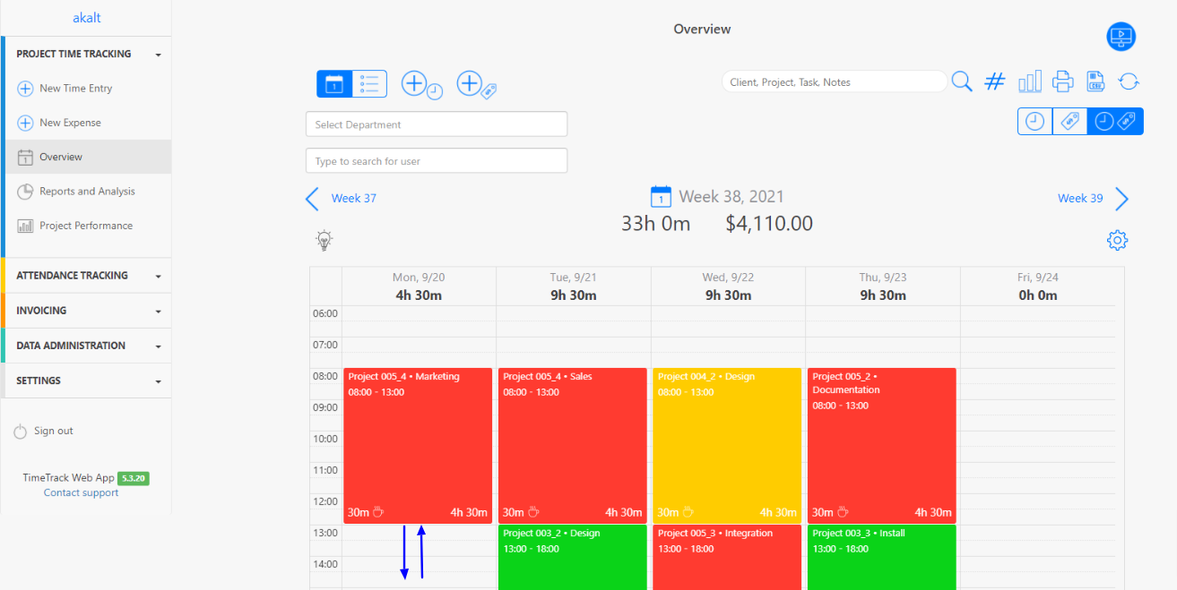 You can also enter your project time entry directly in the calendar view by using the click & drag function. You do not need to enter the start and end date and time of the activities. Simply enter the task you are working on and save the time entry.