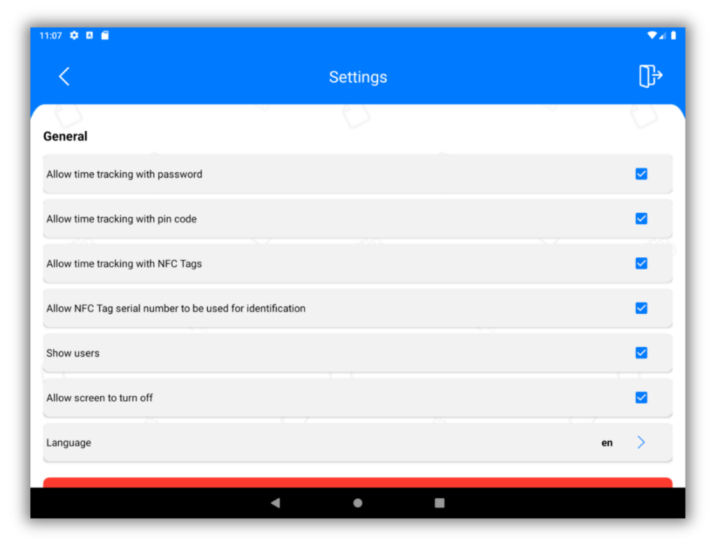 Here a quick reminder: you can always use an NFC tag for stamping. You can also stamp with a pin code or password. All this can be set in the web app.