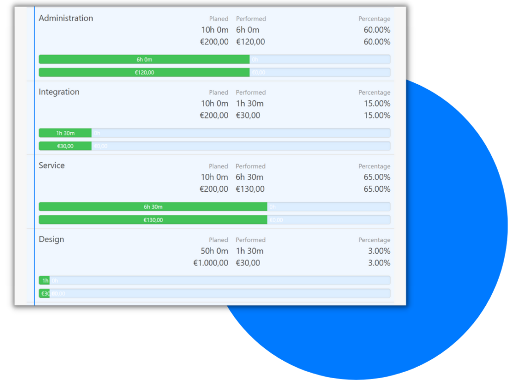 You can set hourly rates on projects and their individual activities, customers, employees or everything combined. This way you have a perfect overview and know exactly what the different hourly rates are. This naturally simplifies invoicing at the end of a project.