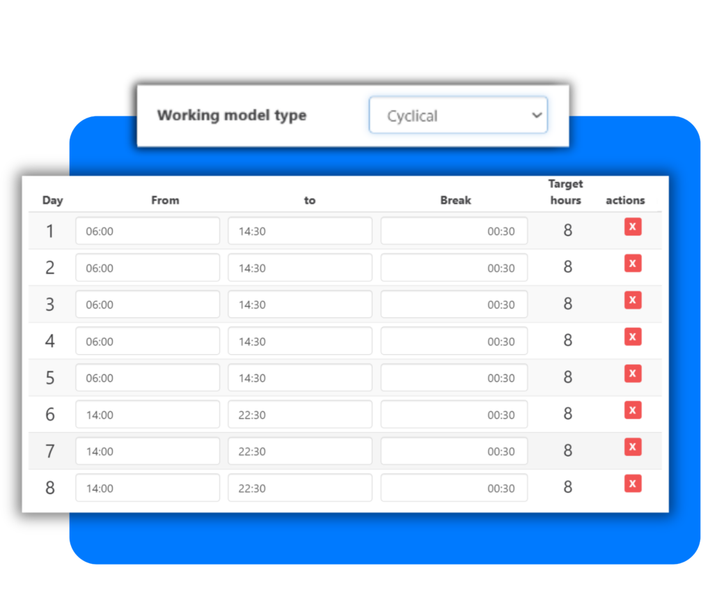 Unlike fixed working hours, where work hours are always the same, the rotating model ensures that work hours vary but follow a predetermined pattern.