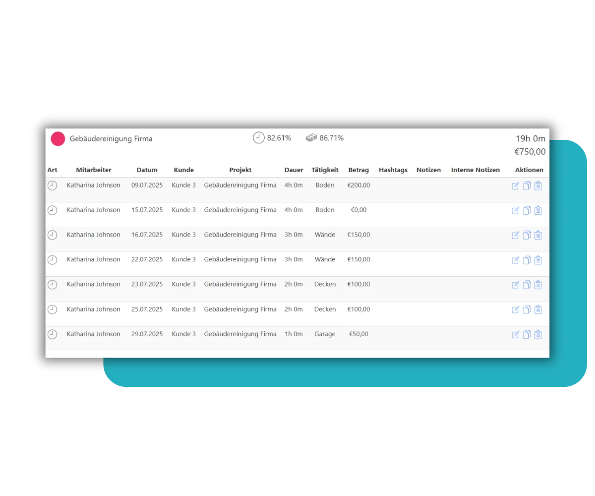 Voller Überblick über erbrachte Leistungen