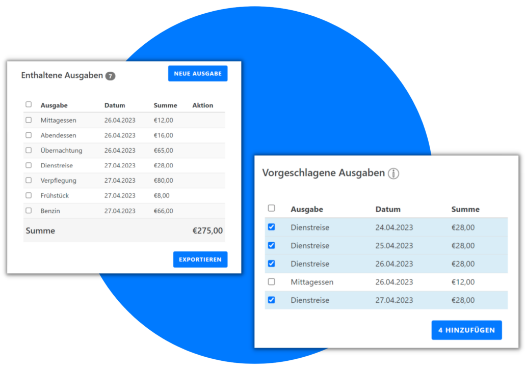 Ja, die Software berechnet, wie lang der Mitarbeiter auf der Dienstreise war und die Abrechnung des Verpflegungsmehraufwands erfolgt automatisch.