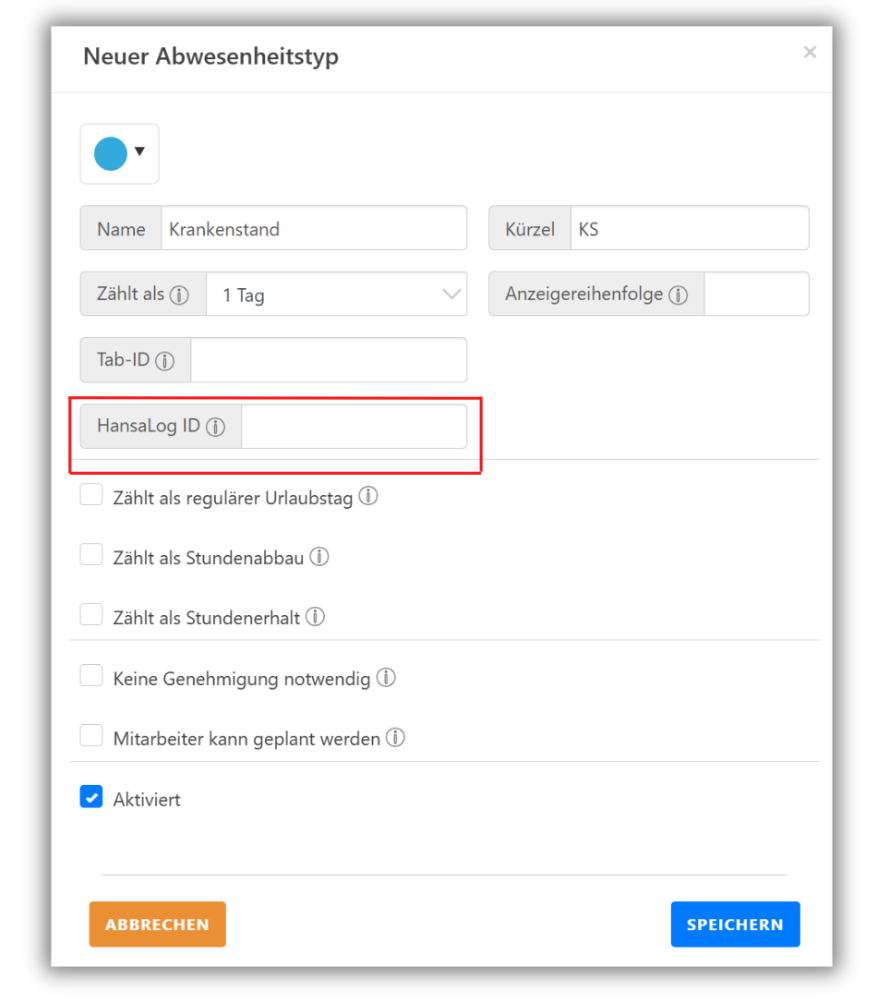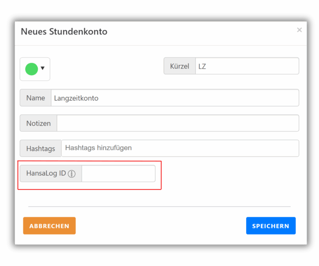 3. Geben Sie die HansaLog ID in das entsprechende Feld (siehe Foto) ein.