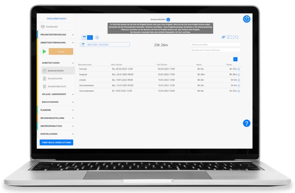 TimeTrack ist die ideale Lösung für Arbeitszeiterfassung. Kontakt aufnehmen